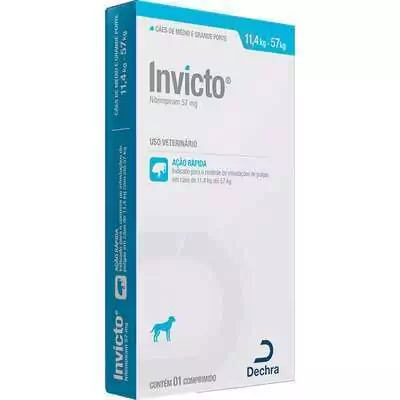 O Ectoparasiticida Dechra Invicto 57 mg para Cães de Médio e Grande Porte é indicado para controle de infestações de pulgas. O nitempiram pertence à classe química dos neonicotinóides, atua bloqueando os receptores nicotínicos da acetilcolina, porém não interfere na acetilcolisnesterase, desta forma, resultando na paralisia e morte das pulgas adultas. Em estudo, observou-se uma eficácia superior a 90% em cães e gatos.