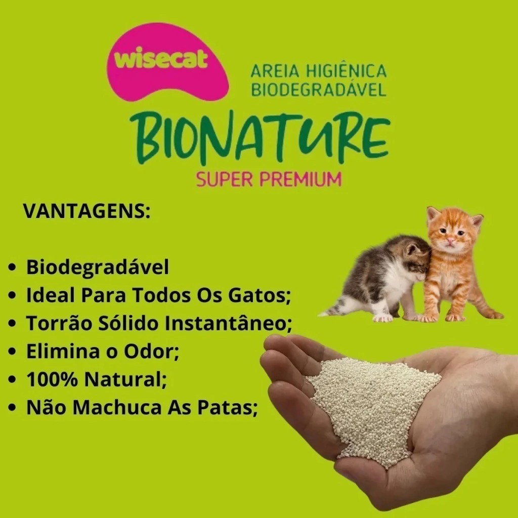 A Areia Higiênica Bionature Super Premium redefine os padrões de higiene para gatos ao oferecer uma solução inovadora, biodegradável e 100% natural. Desenvolvida a partir de derivados de mandioca, esta areia proporciona uma alternativa ecologicamente correta e conveniente para a higiene do seu gato, cuidando simultaneamente do meio ambiente.