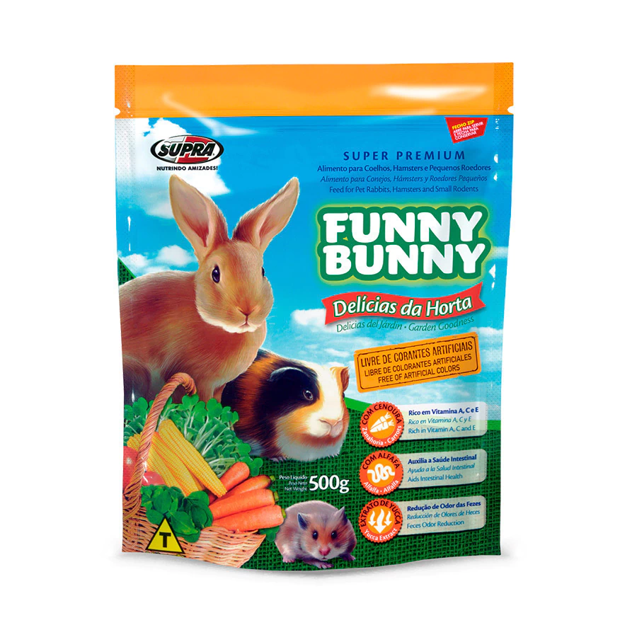 Alimento exclusivo para coelhos de estimação e pequenos roedores, elaborado a partir de vegetais nobres, como a Alfafa verde, que aporta Vitaminas e Fibras essenciais para a digestão, visão e eliminação de bolas de pelo, cenoura desidratada, vitamina C favorece a calcificação dos ossos, auxilia na visão e atua como antioxidante natural. Alimento extrusado especialmente completo para coelhos de estimação, hamsters e outros pequenos roedores. Com cenoura, rica em vitamina A e Alfafa, fonte de fibras essenciais.