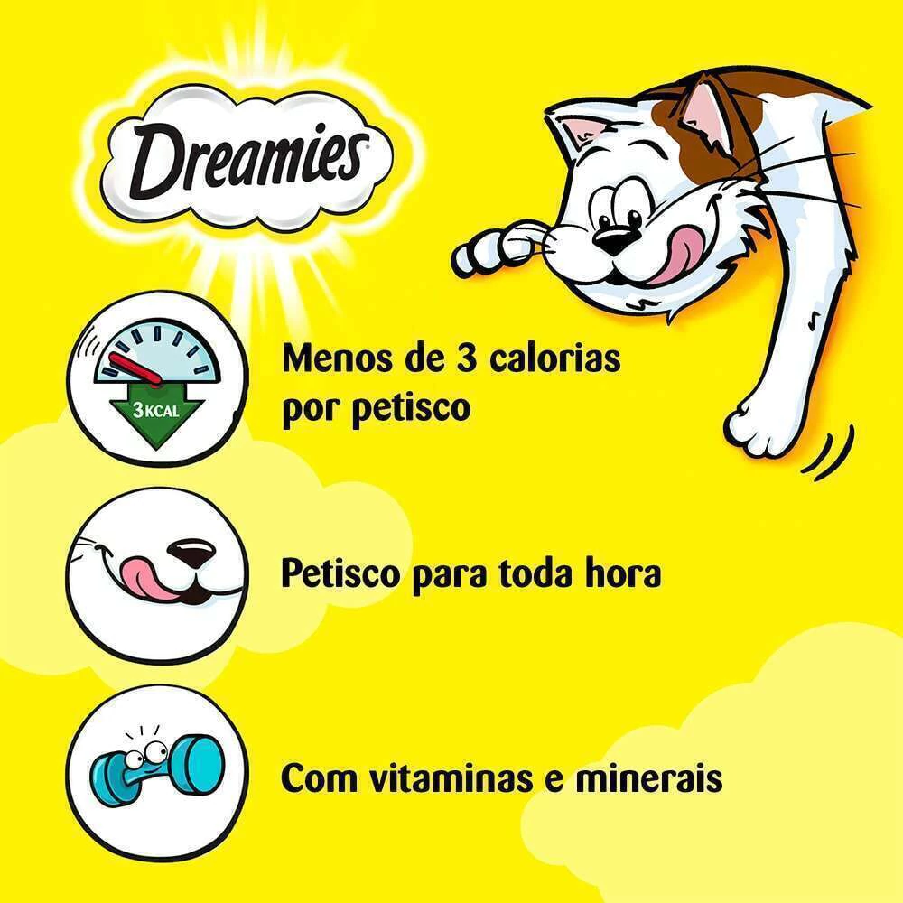 O Petisco Dreamies para Gatos Adultos Sabor Queijo garantem diversão e mais momentos junto com seu gato. São deliciosos petiscos em três diferentes sabores: Carne, Frango e Queijo. Seu gato vai sonhar com os pedacinhos crocantes e recheados todos os dias. Descubra qual é o favorito do seu gato!