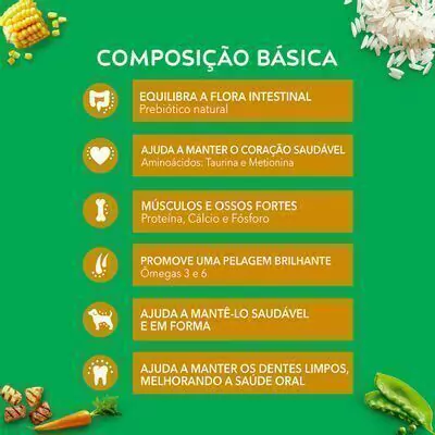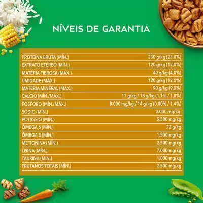 Um alimento 100% completo e balanceado, sem corante, com multivitaminas e minerais, nutrientes essenciais para o bom funcionamento do metabolismo e que auxiliam o seu pet a ter saúde e vitalidade por muito tempo.