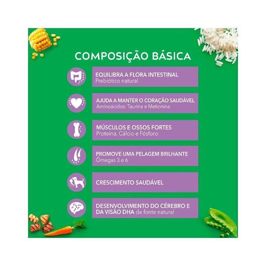 - Alimento com ingredientes 100% completo e balanceado, indicado para cães filhotes.