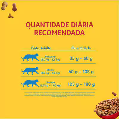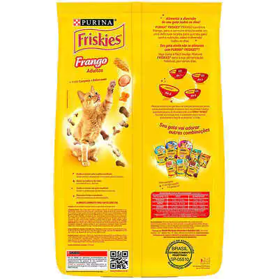 A combinação do frango, peru e cenoura selecionados tornam a Ração Seca Nestlé Purina Friskies Frango para Gatos Adultos uma deliciosa receita. Com formatos que mexem com a imaginação do seu pet, nutre e diverte a cada refeição. Possui níveis apropriados de zinco e ácidos graxos essenciais para pele e pelos saudáveis. Á adição de vitamina A e taurina, proporciona visão clara e saudável. Com vitaminas e minerais que ajudam nas defesas naturais e fontes de proteínas que proporciona o fortalecimento dos músculos.