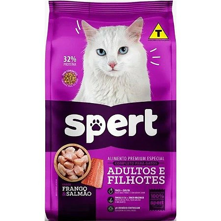 A Ração Spert Premium Especial para Gatos Adultos e Filhotes é uma opção nutricionalmente balanceada, Além de não conter corantes em sua composição, essa ração contém ômega 3 e 6 + zinco orgânico para proteção da pele e pelos macios e brilhantes. A presença de carnitina e fibras ajuda a controlar o peso do gato, enquanto a riqueza em taurina ajuda na saúde da visão e do coração. A fórmula da ração inclui prebióticos (MOS) para equilíbrio intestinal e pH urinário controlado para equilíbrio de sais e bases. A presença de Yucca e Zeólita auxilia na redução do odor das fezes e em fezes mais firmes. A Ração Spert Premium Especial para Gatos Adultos e Filhotes é uma escolha saudável e balanceada para a alimentação dos seus gatinhos!