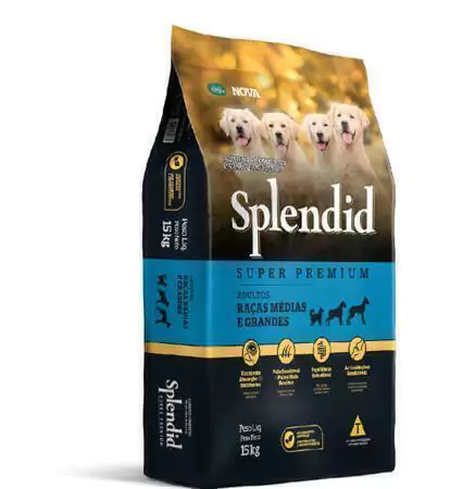 Spendid Adultos é um alimento completo desenvolvido para cães adultos raças médias e grandes. Formulado com ingredientes de altíssima qualidade, Splendid Adultos é enriquecido com fibras especiais que combinadas com extrato de yucca auxiliam na formatação e redução do odor das fezes, possuem ainda sulfato de condroítina e sulfato de glicosamina que auxiliam na prevenção e tratamento de problemas articulares.
